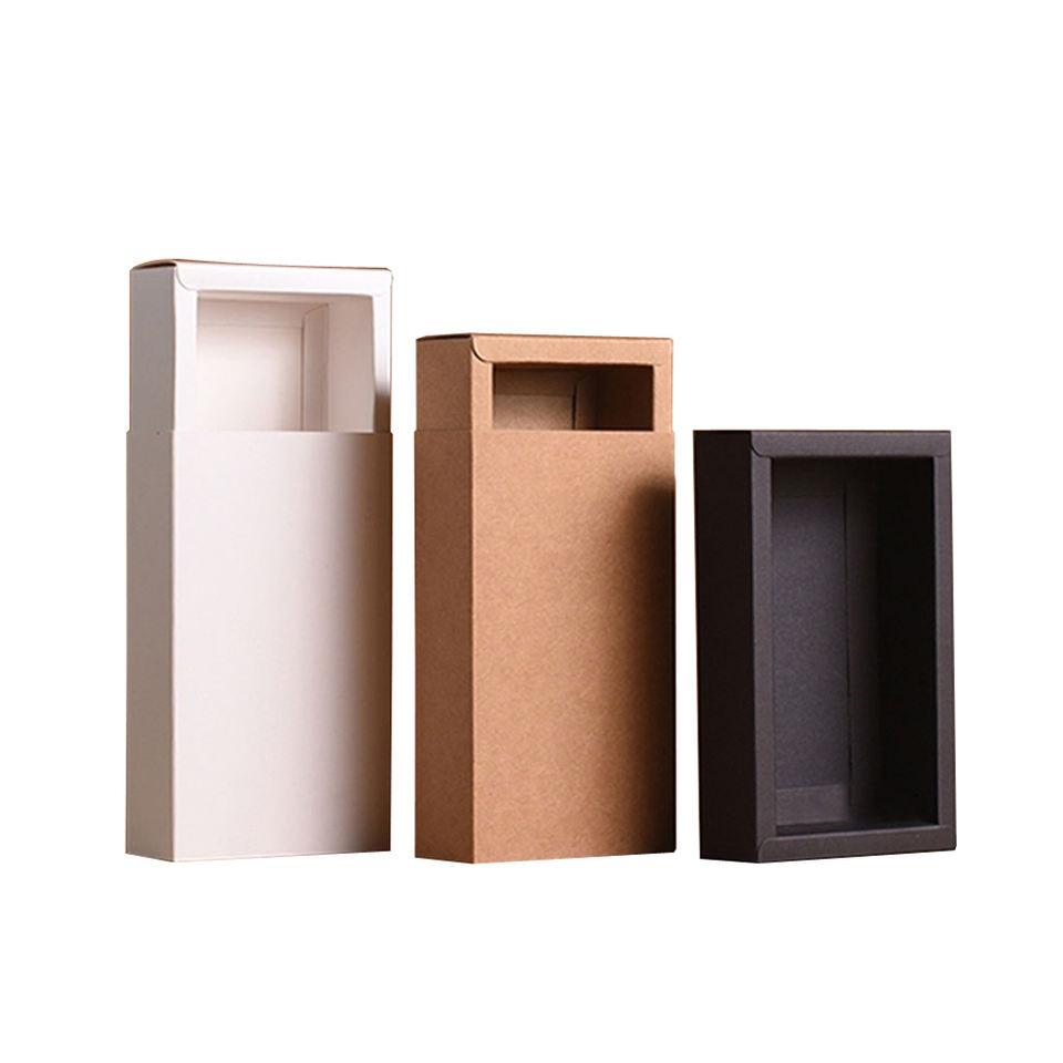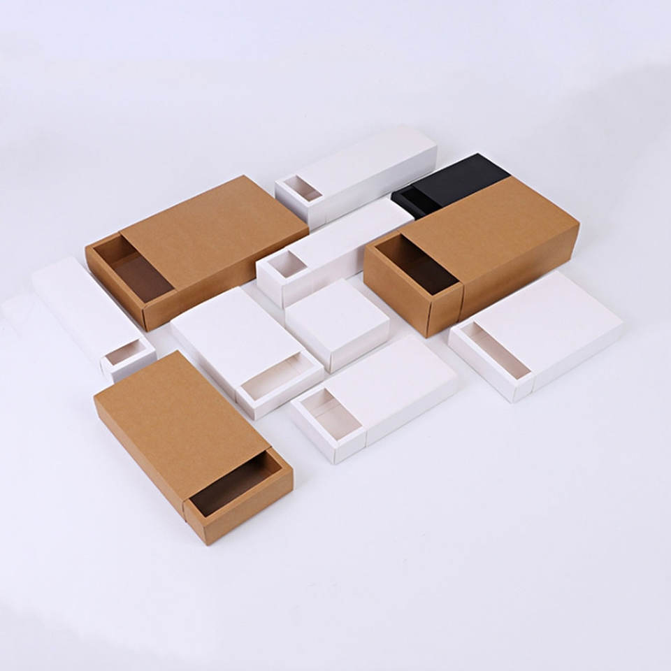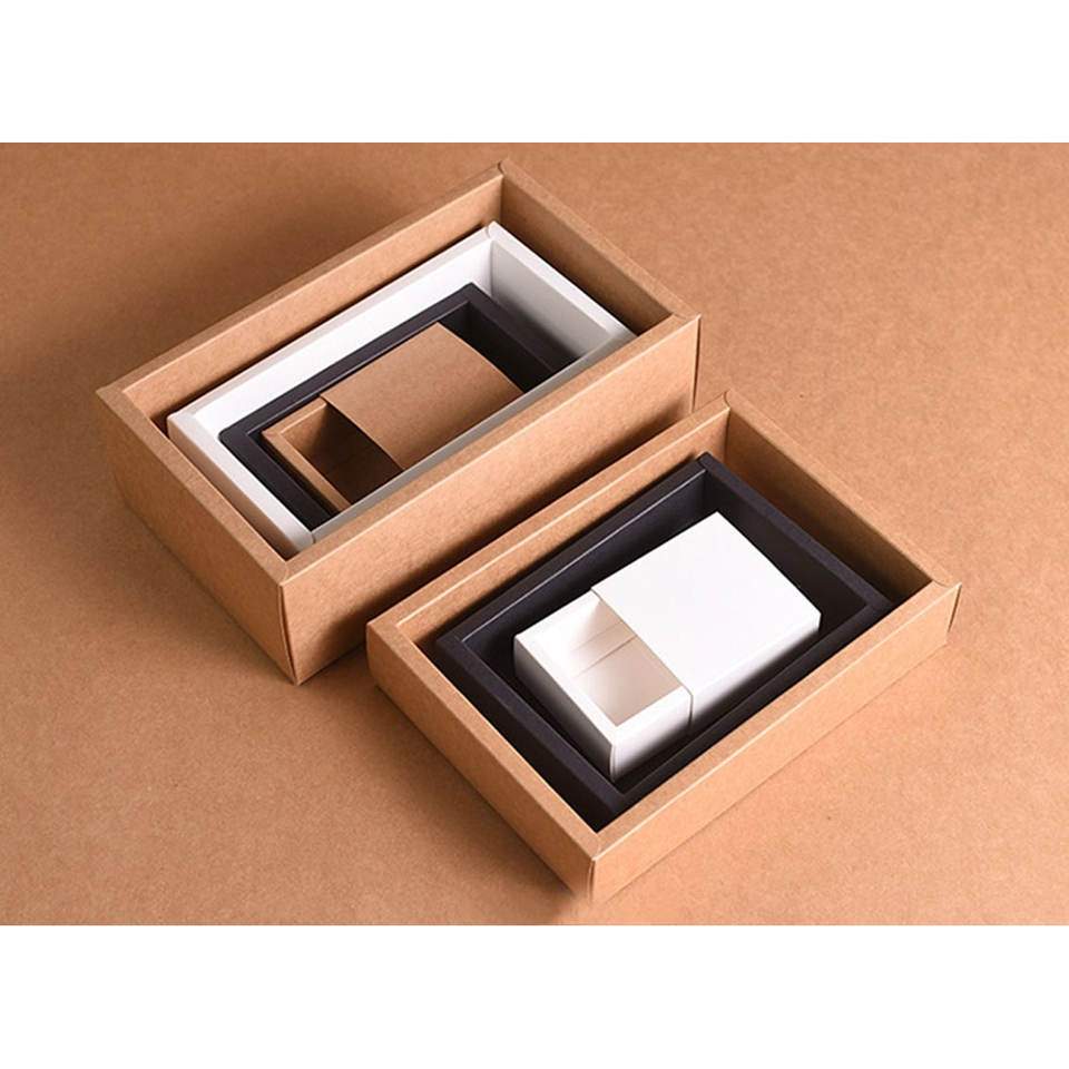 กล่องของขวัญกระดาษคราฟท์สีดำขาว ชุดกล่องกระดาษแข็งแบบมีลิ้นชักหนา 2 ซม. ปิดแบบเลื่อนได้ ปรับแต่งลายนูนได้ สำหรับของขวัญงานแต่งงาน