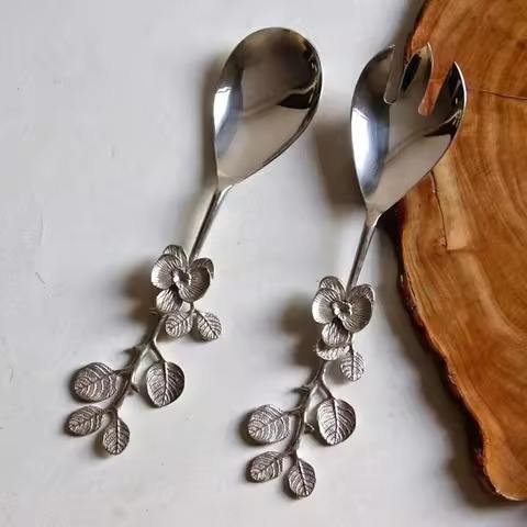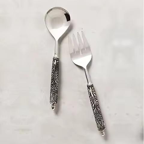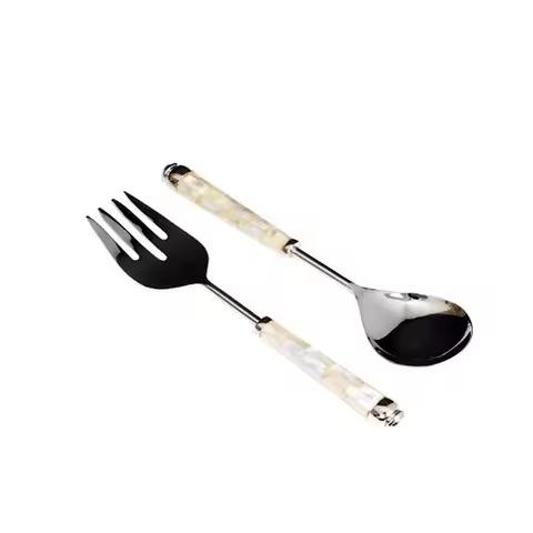 ชุดเสิร์ฟสลัดสแตนเลส ด้ามจับเรซิ่นสีดำขาว ด้ามจับสลักลายโบราณสีดำ