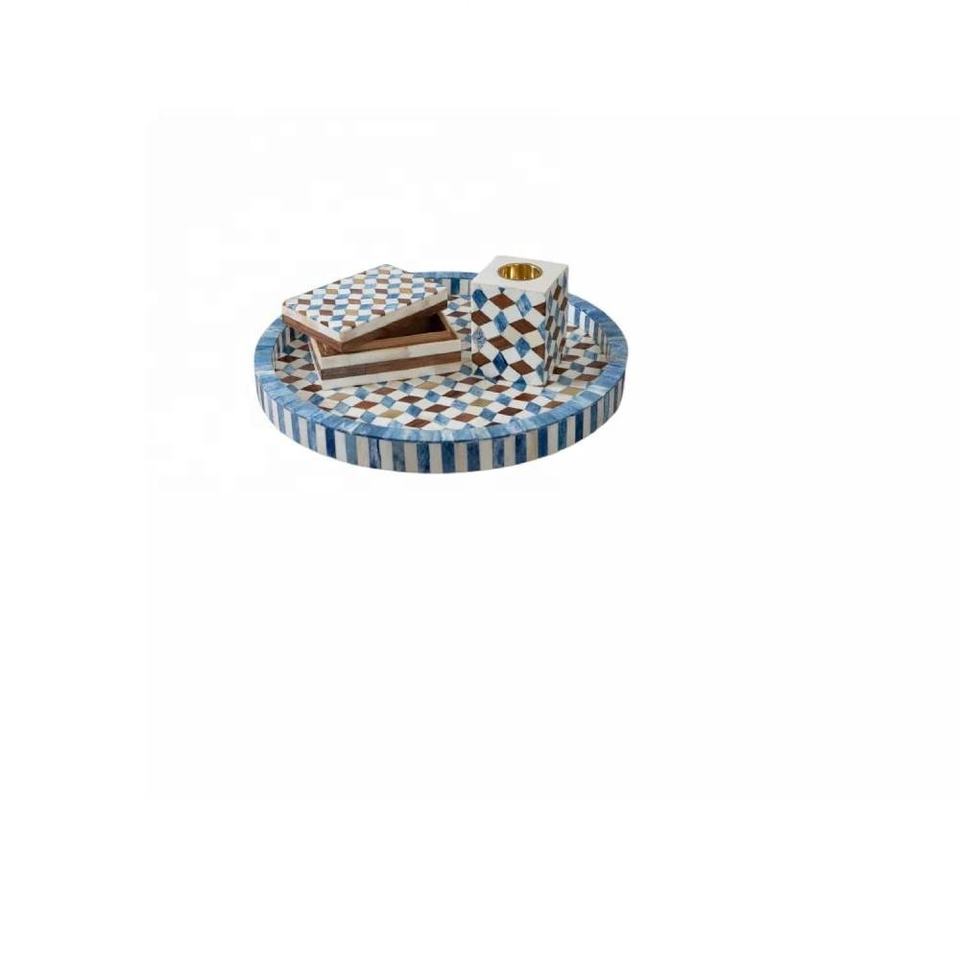 ชุดถาดเรซินสีดำและสีขาวพร้อมกล่องเครื่องหอมบาคูร์ชุดตะเกียงเครื่องหอมชุดไฟชาเรซิ่นผู้ถือไม้ไผ่งานฝีมืออินเดีย