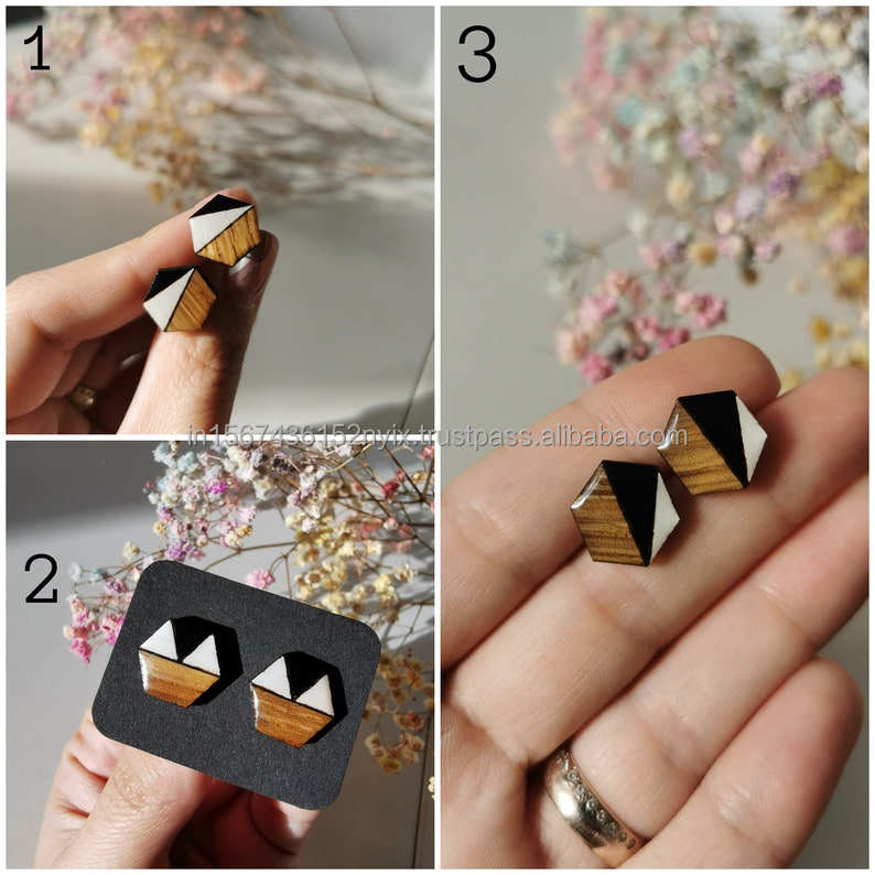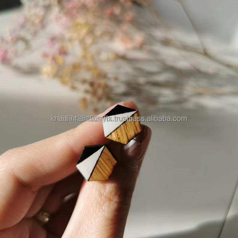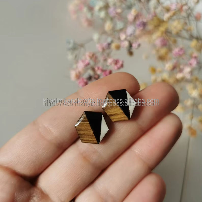 ต่างหูไม้เรซินสีดำและสีขาวพร้อมดีไซน์รูปทรงเรขาคณิตสไตล์วินเทจทันสมัยเหมาะสำหรับงานแต่งงานและของขวัญ