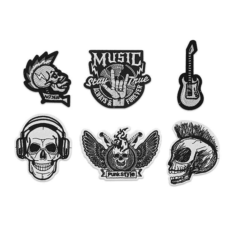Black - and - White Rock - Punk - Style Embroidered Skull Cloth Patches, Patches for Mending Holes in Clothes and Hats.