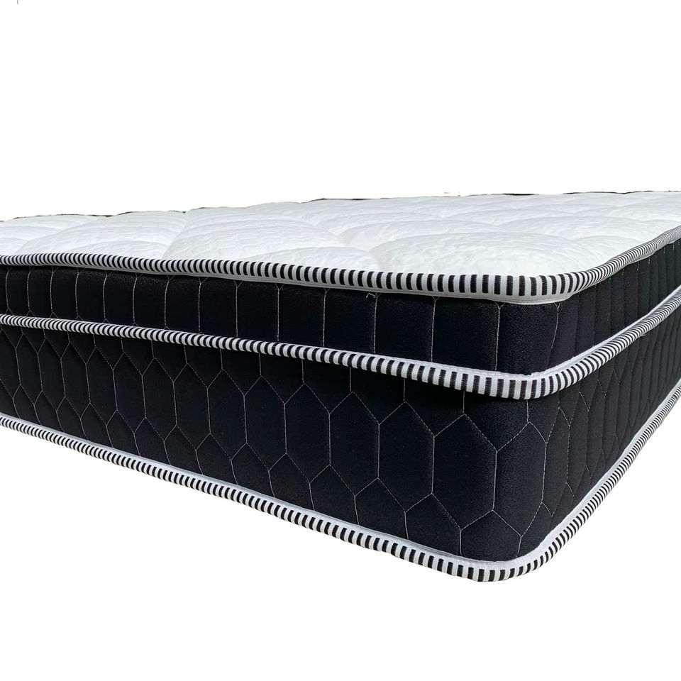 ที่นอนสปริงสีดำและสีขาวพร้อมบุนวมแสนสบาย