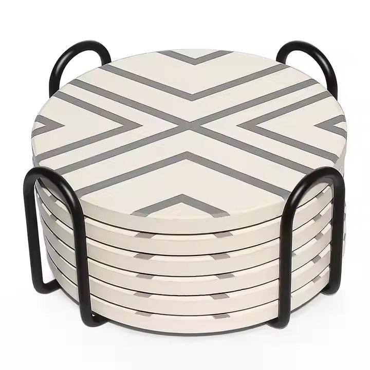 ชุดที่รองแก้วทำจากไม้และเรซินสีดำและสีขาวของตกแต่งโต๊ะ4แบบที่ทันสมัยสำหรับบ้านโรงแรมและรีสอร์ท