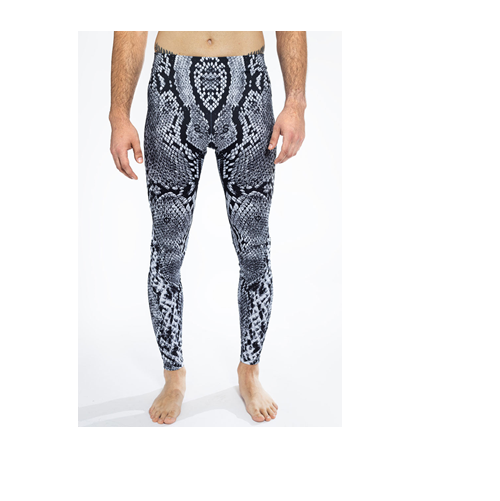 เลกกิ้งลายงูสีดำและสีเทาสำหรับผู้ชาย เลกกิ้งลายสัตว์ เลกกิ้งสำหรับผู้ชายที่ผลิตขึ้นเพื่อให้คุณสวมใส่สบาย เลกกิ้งเอวสูง
