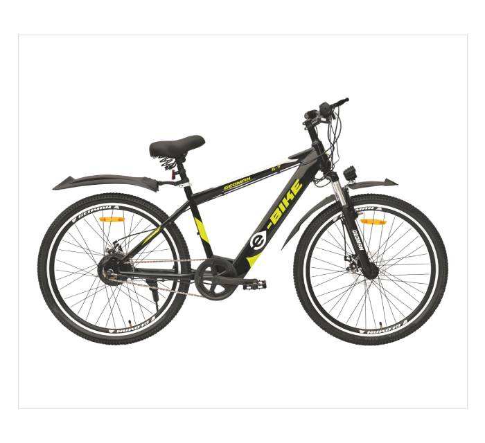 จักรยานไฟฟ้าไฟฟ้าสีดำและสีเหลืองเกียร์ความเร็วสำหรับปั่นจักรยานเสือภูเขา