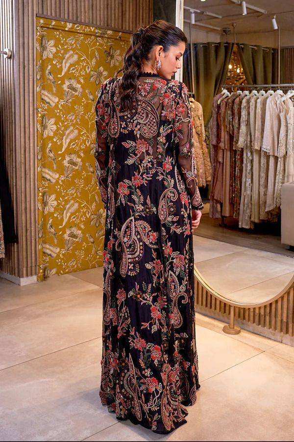 ชุดส่าหรีผ้าไหมเนื้อนิ่มสีดำสำหรับดีไซเนอร์พร้อมด้วยเสื้อแฟนซีและเสื้อคลุมดีไซน์เนอร์ชุดส่าหรีสำหรับงานแต่งงานส่าหรีงานปาร์ตี้