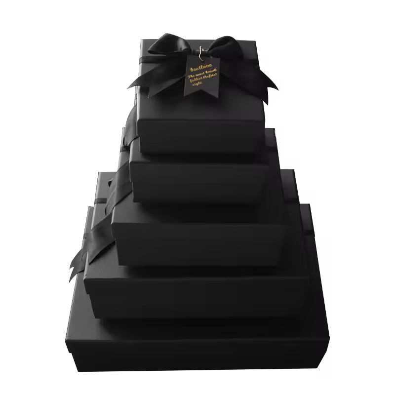 ชื่อผลิตภัณฑ์:กล่องของขวัญทรงสี่เหลี่ยมมีโบว์ผูกสี่เหลี่ยมพร้อมริบบิ้นสีดำ