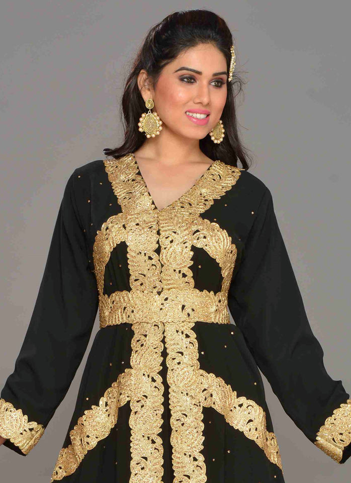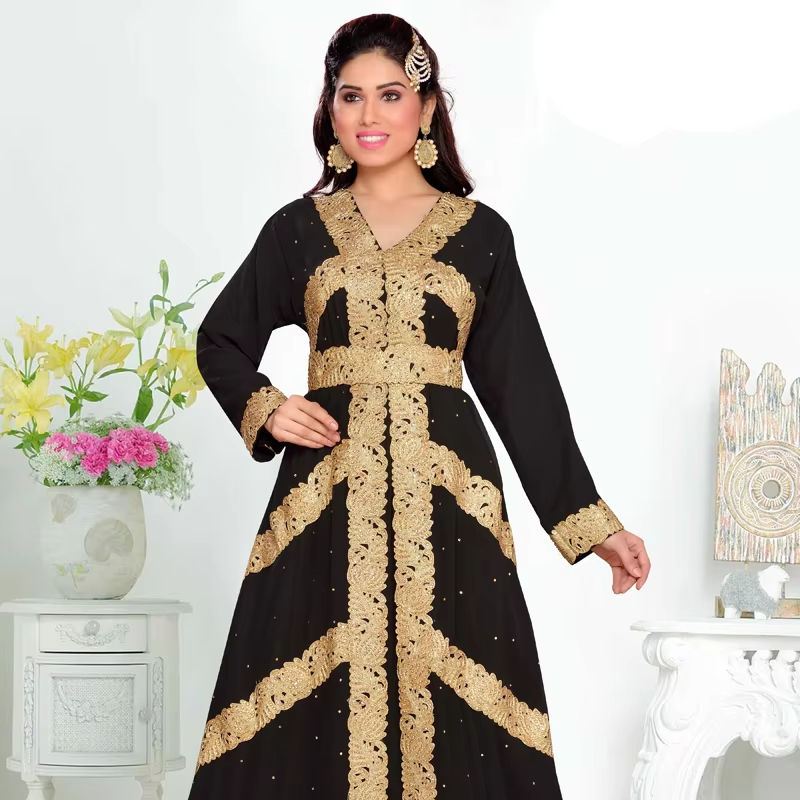 ชุดคาฟตันผ้าจอร์เจียอิสลามปักสีดำ