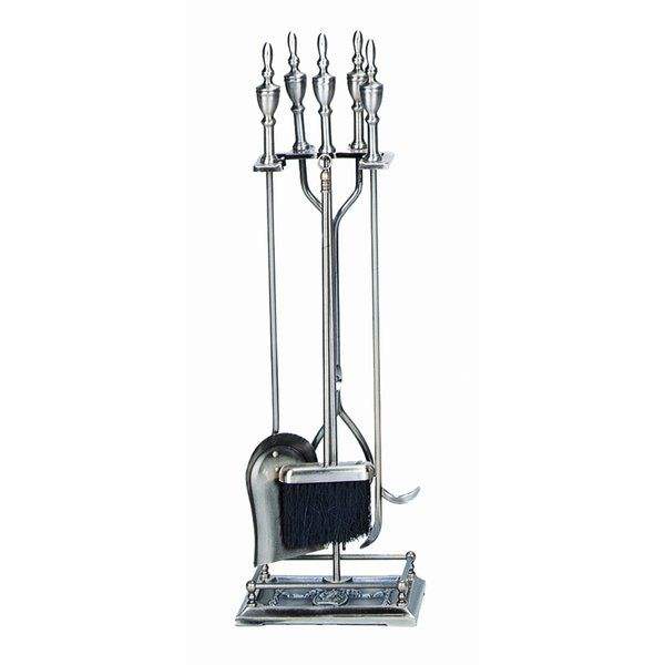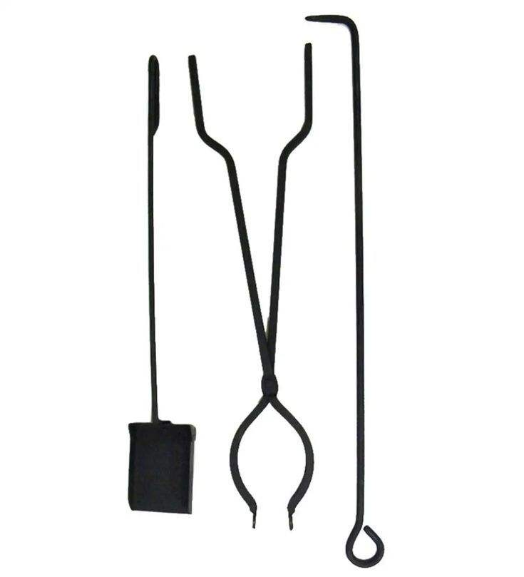 ชุดเครื่องมือจุดไฟเหล็กสีดำที่มีเส้นโค้งที่สง่างามและขาตั้งที่แข็งแรงเหมาะสำหรับการรักษาพื้นที่เตาผิงให้เรียบร้อยและมีสไตล์