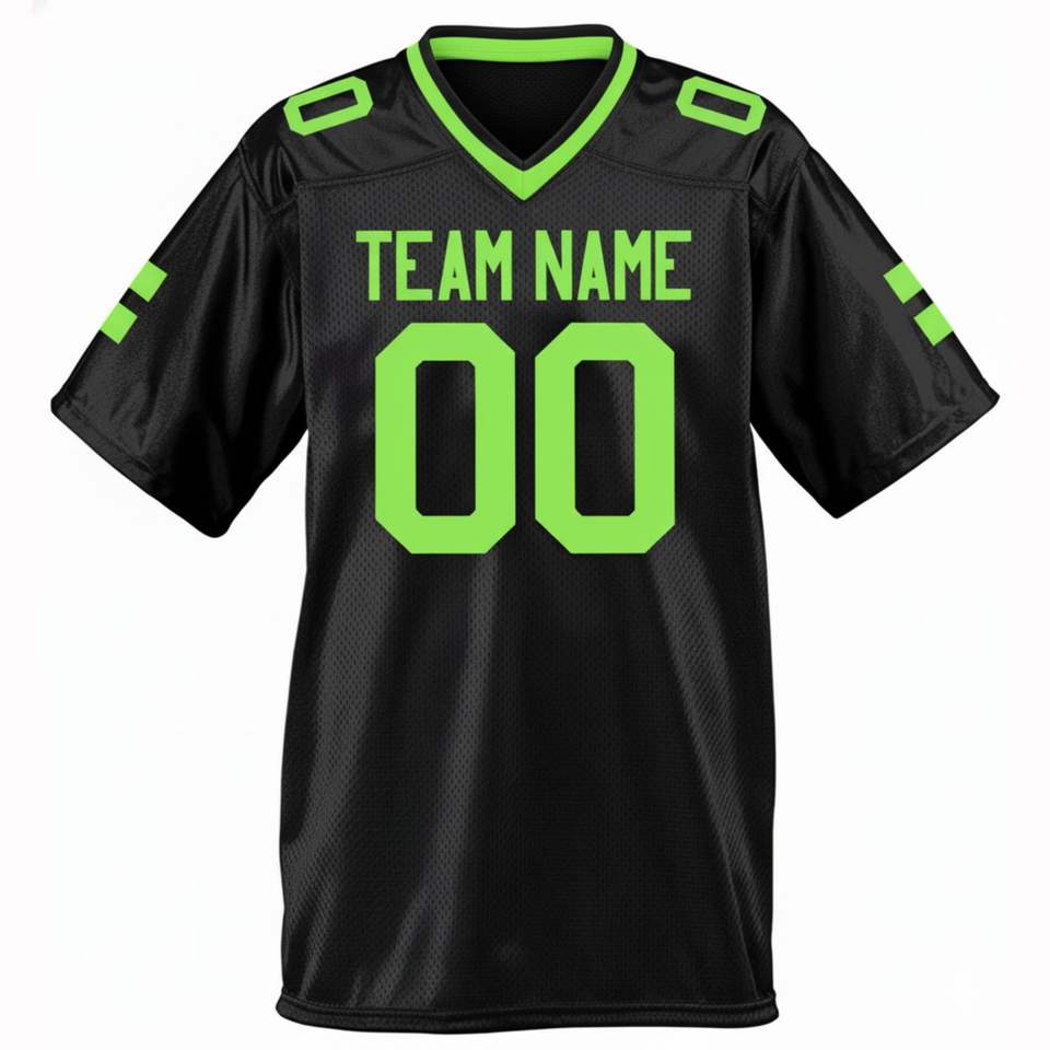 เสื้อเจอร์ซีย์ฟุตบอลสีดำสีเขียวนีออนชุดทีมระบายอากาศได้ดีเสื้อกีฬาแขนสั้น