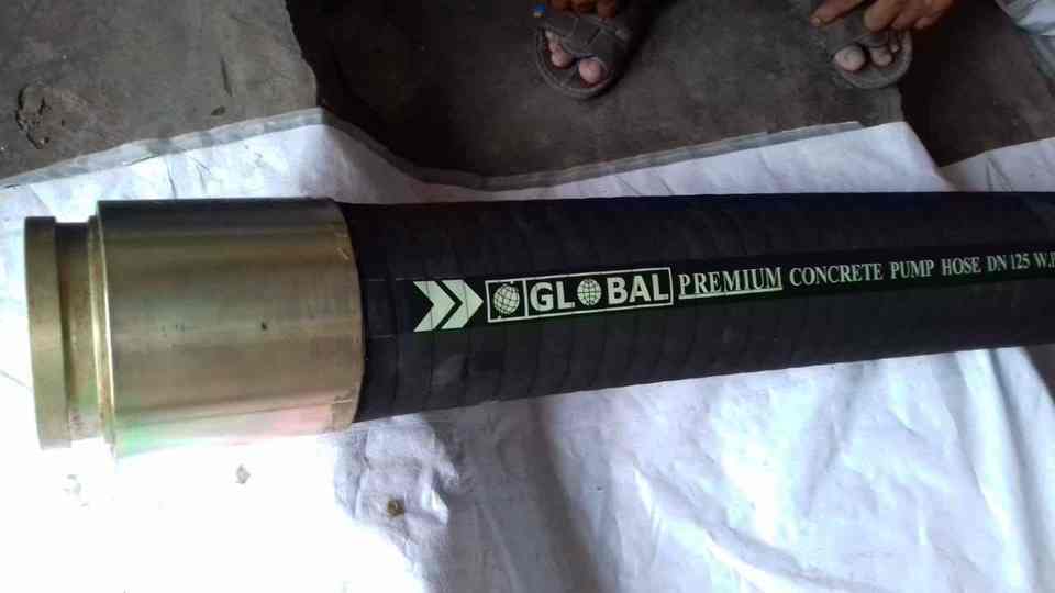 สายยางปั๊มคอนกรีตสีดำ ปลายเหล็ก ทนทาน ยืดหยุ่นได้ สำหรับงานก่อสร้าง