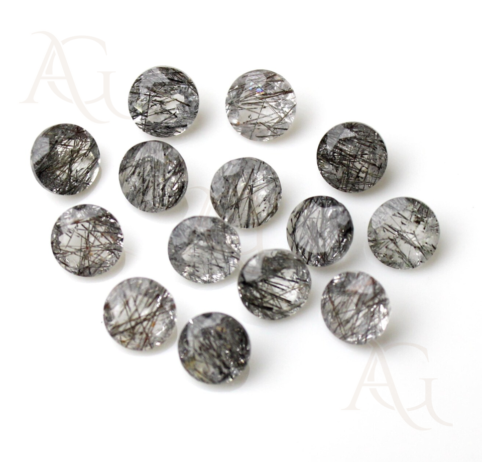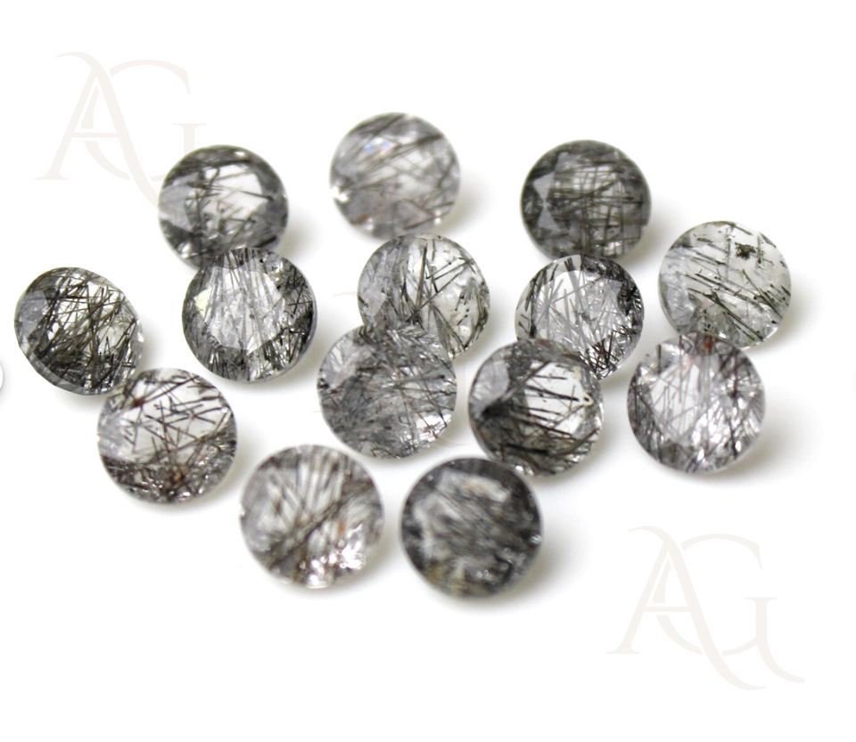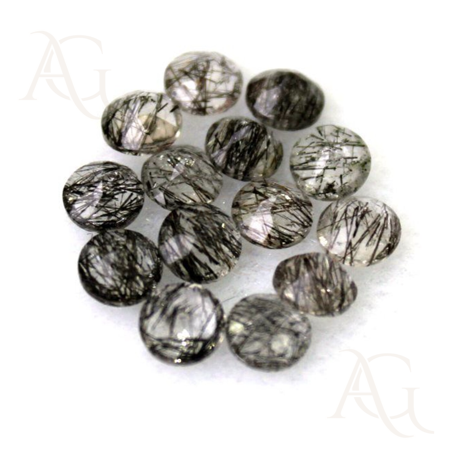 ควอตซ์สีดำรุ้ทิลิคทรงกลมเจียระไนเหลี่ยมเพชรพลอยที่มีคุณภาพสูงสำหรับทำเครื่องประดับทองสีเงินขนาด8มม.