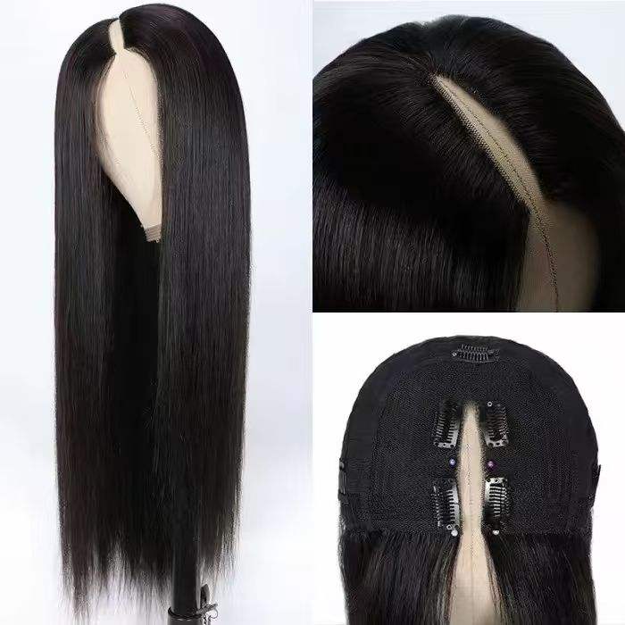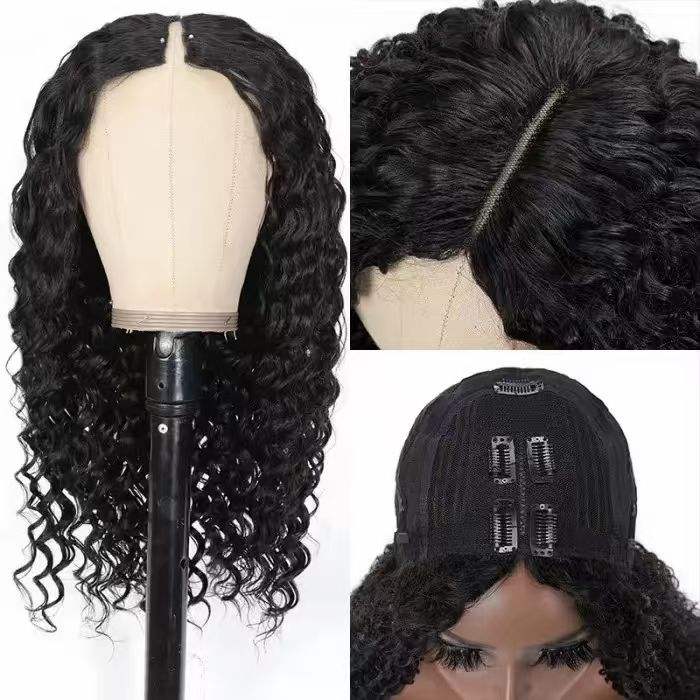 วิกผมสีดำแบบบิดเป็นลอนรูปตัวยู เหมาะสำหรับผู้หญิงผิวดำผมสั้น วิกผมทรงตัววี ความหนาแน่นสูง 250% 300%