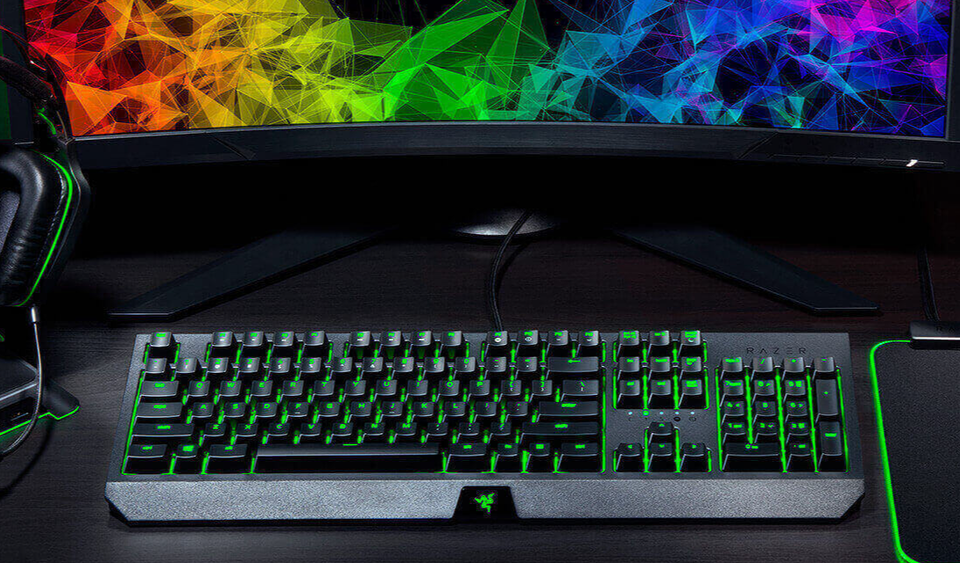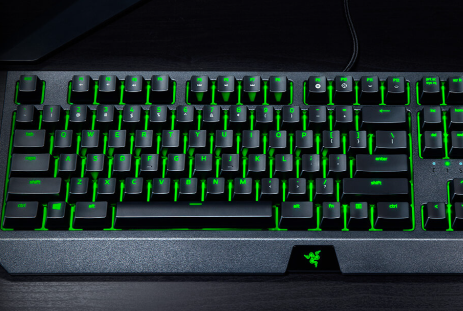 แบล็ควิโดว์ เอสเซนเชียล กรีน ไฟแบ็คไลท์ LED สีเขียว 104 ปุ่ม ขนาดมาตรฐานเต็มรูปแบบ