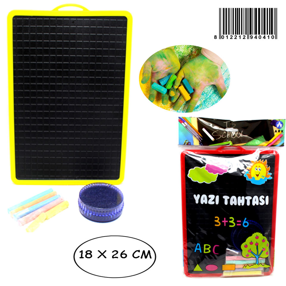 กระดานดำ 18x26 ซม. พร้อมแปรงลบชอล์ก กรอบพลาสติก พื้นผิวเขียนได้ อุปกรณ์การศึกษา ใช้ในโรงเรียน สำนักงาน
