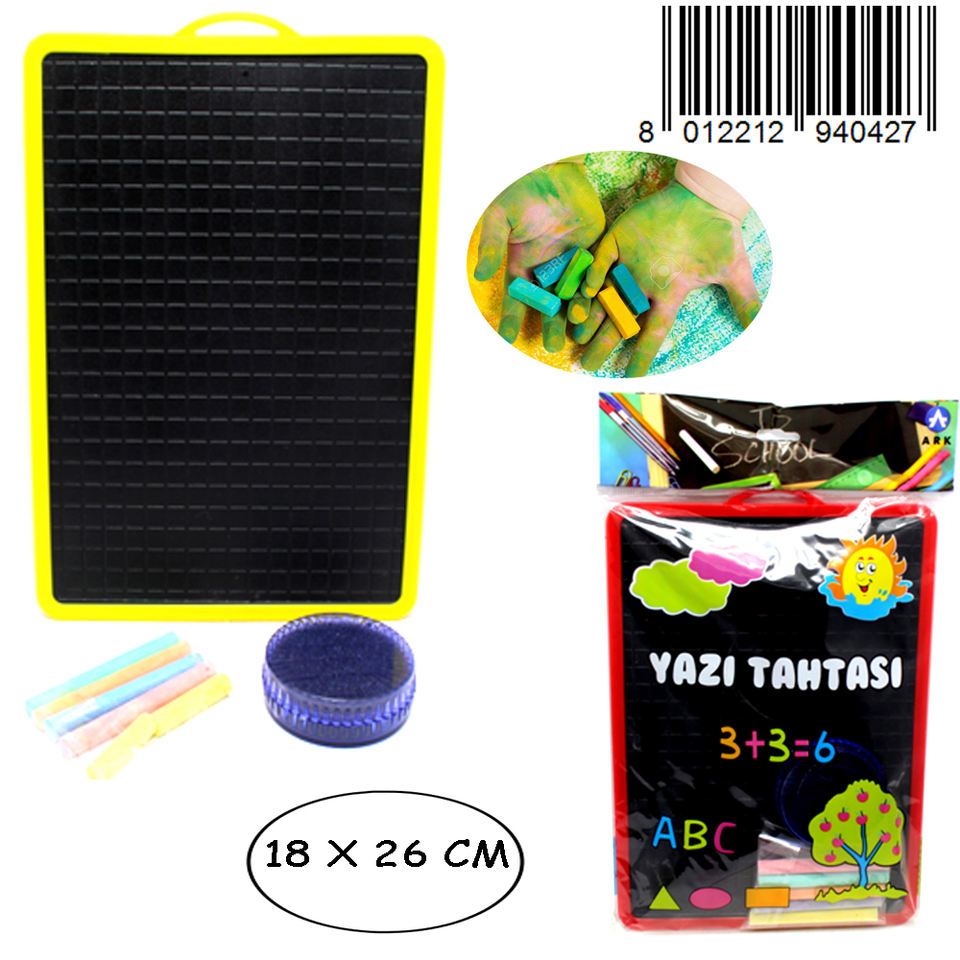 กระดานดำ 18x26 ซม. พร้อมชอล์กและยางลบ พื้นผิวสำหรับเขียน กระดานการศึกษาสำหรับเด็ก ใช้ในโรงเรียน กรอบพลาสติก