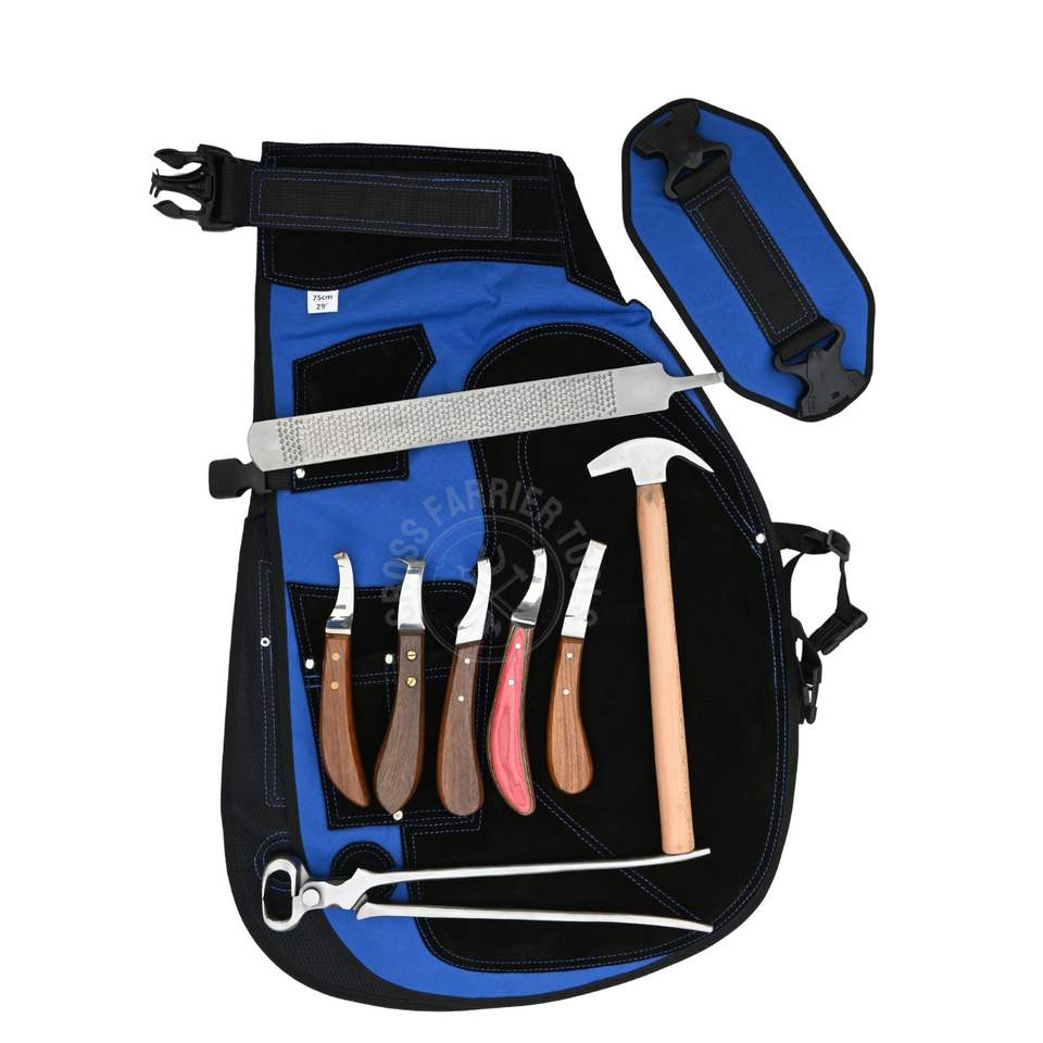 คุณภาพ:ชุดเครื่องมือช่างตีเกือกม้าคุณภาพสูง 5 มีดชุดช่างตีเกือกม้าผ้ากันเปื้อนหนัง