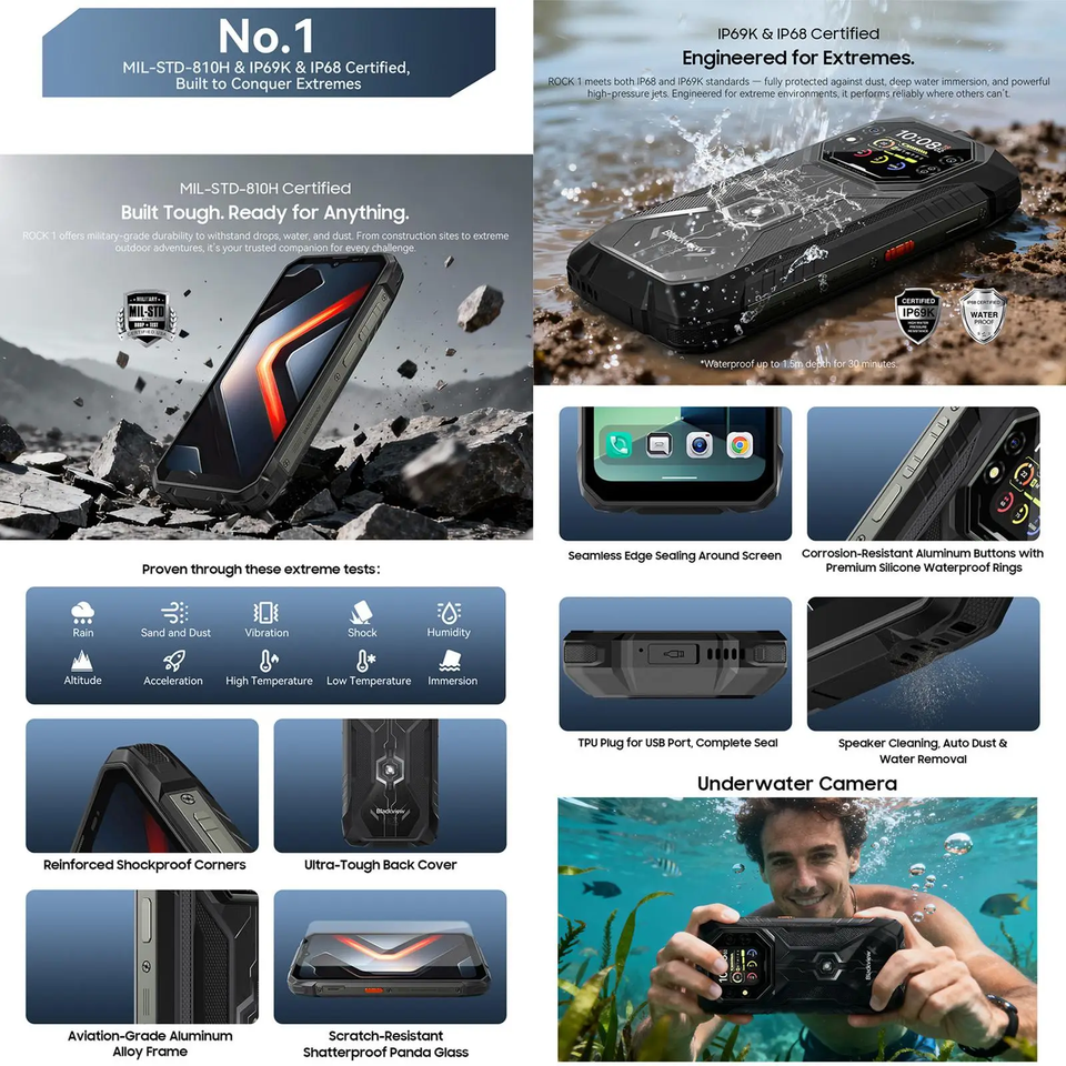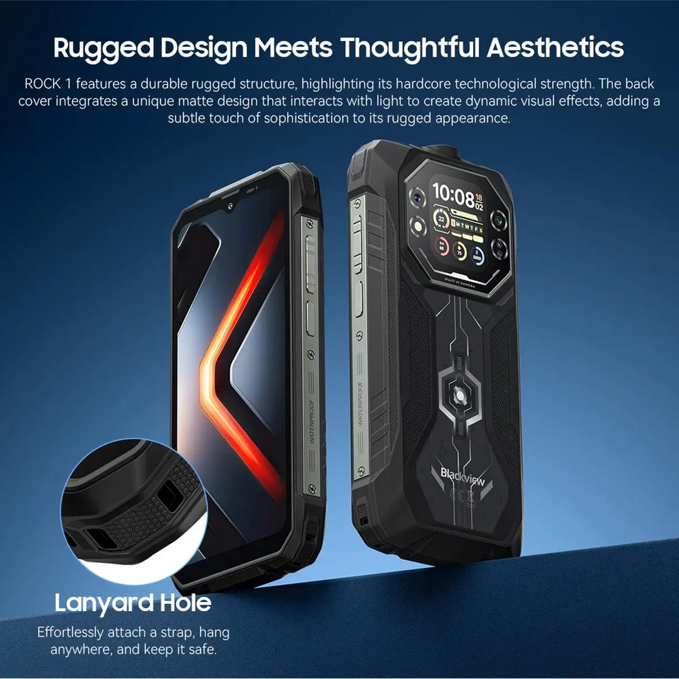 Blackview ROCK 1 โทรศัพท์มือถือสุดแกร่ง 8GB+256GB หน้าจอ 6.56 นิ้ว 90Hz ระบบปฏิบัติการ Android 16 ชิปเซ็ต Helio G81 แบตเตอรี่ 15000mAh กล้อง 16MP รองรับ 4G ชาร์จเร็ว 55W รองรับ NFC