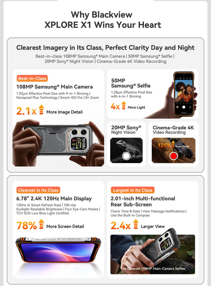 Blackview สมาร์ทโฟน Xplore 1ขนาด10000มิลลิแอมป์12 + 256กิกะไบต์มองเห็นกลางคืน dimensity 7050แอนดรอยด์15 LCD 120เฮิร์ตโทรศัพท์108MP หลัก