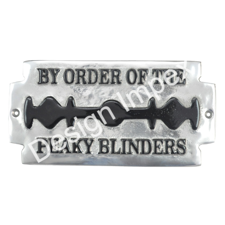 ป้ายโลหะลายใบมีด ติดผนังและประตูได้ง่าย ตามคำสั่งของ Peaky Blinders ป้ายสั่งทำ งานฝีมือทำมือ