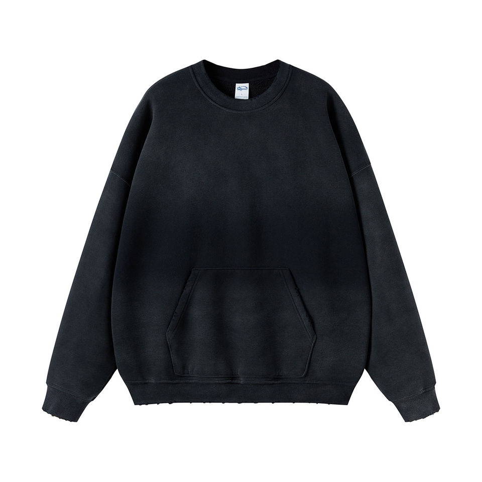 เสื้อสเวตเชิ้ตคอกลมสีดำวินเทจ หนัก 360 กรัม แบบโอเวอร์ไซส์ สไตล์ทำสีซีดแบบ Stone Acid Wash สำหรับสกรีนโลโก้ตามสั่ง ขายส่ง