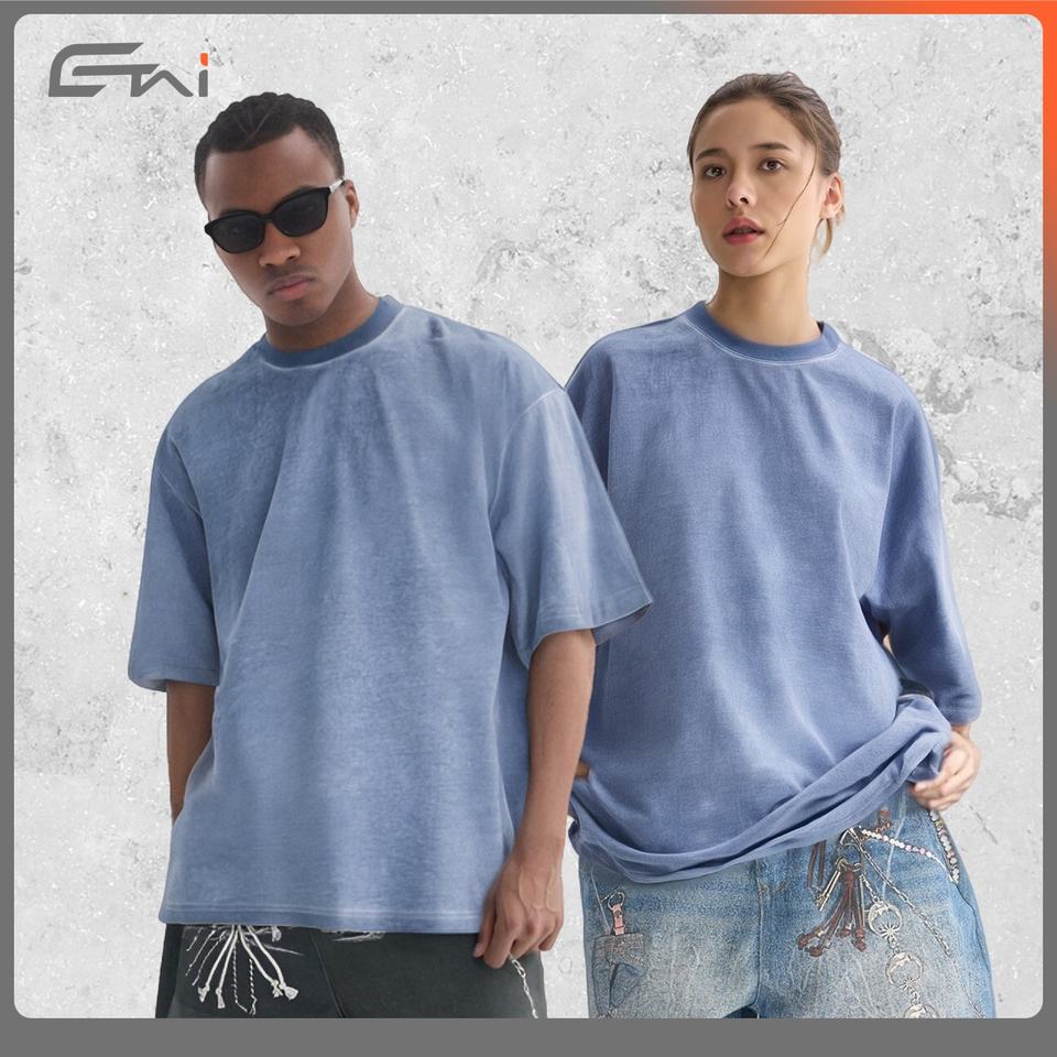 เสื้อยืดผ้าฝ้ายพิมพ์ลายตามสั่งสำหรับผู้ชายเสื้อยืดผ้าฝ้าย100% ไหล่ตกเสื้อยืดโอเวอร์ไซส์270 GSM