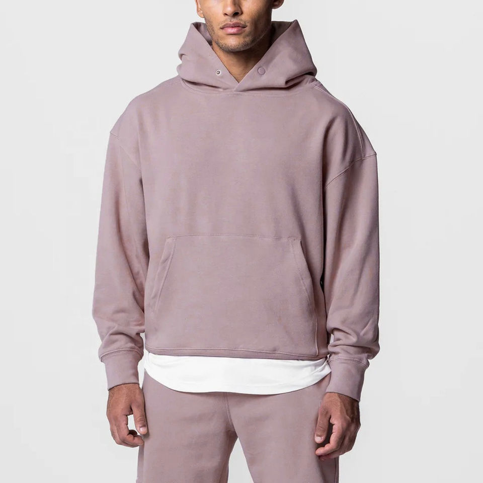 เสื้อมีฮู้ดผ้าฝ้ายสีดำแบบสวมหัวมีฮู้ดสำหรับผู้ชายโอเวอร์ไซซ์ผ้าเฟรนซ์เทอร์รี่โอเวอร์ไซส์ออกแบบได้ตามต้องการ