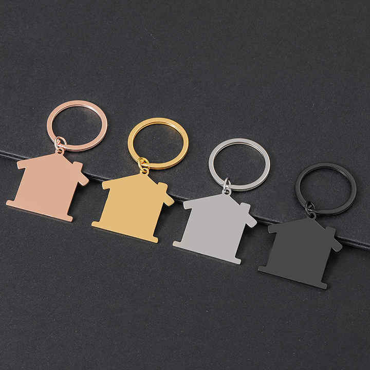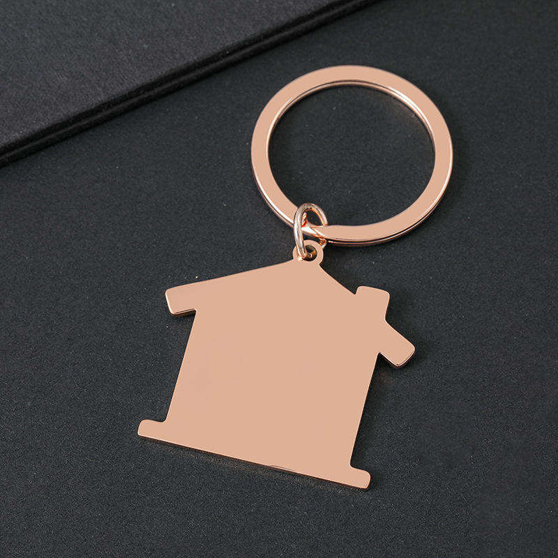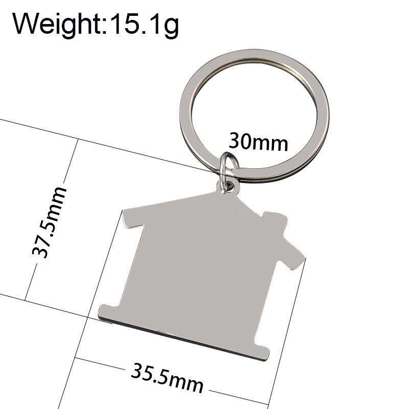 พวงกุญแจโลหะสแตนเลสรูปบ้าน สลักโลโก้ตามสั่ง ของขวัญสำหรับผู้ชายและผู้หญิง