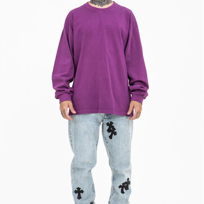 เสื้อยืดแขนยาวสำหรับผู้ชายเสื้อเชิ้ตผ้าฝ้าย100% แขนยาวคอม็อกซี่แอซิดสำหรับผู้ชาย