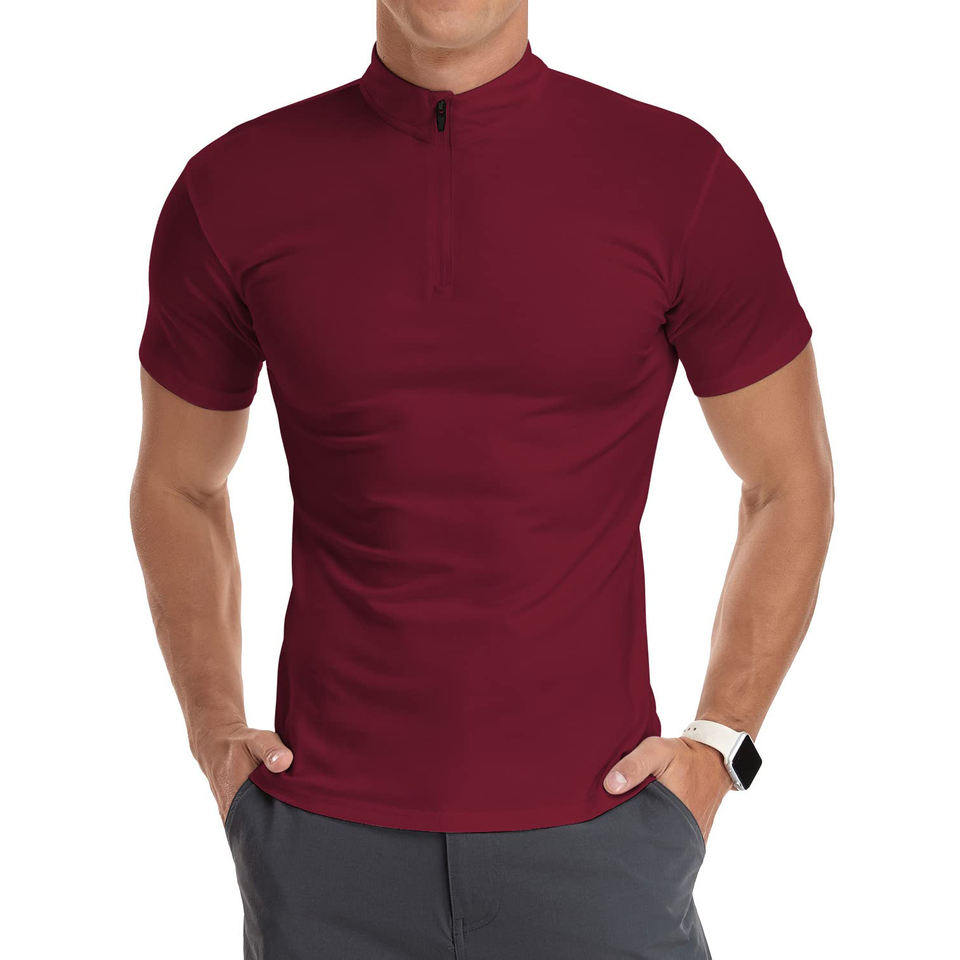เสื้อยืดแขนสั้นผ้าโพลีเอสเตอร์ 100% แห้งเร็ว ระบายอากาศดี คอซิป ครึ่งซิป แบบเรียบง่าย ดีไซน์ซิปด้านหน้า สีสันปรับแต่งได้