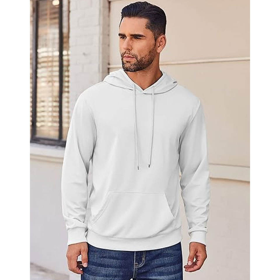 เสื้อสเวตเชิ้ตมีฮู้ดแบบสวมศีรษะน้ำหนักเบาและโลโก้การพิมพ์ลายแบบไตรผสมมีฮู้ดฉลากตามสั่ง