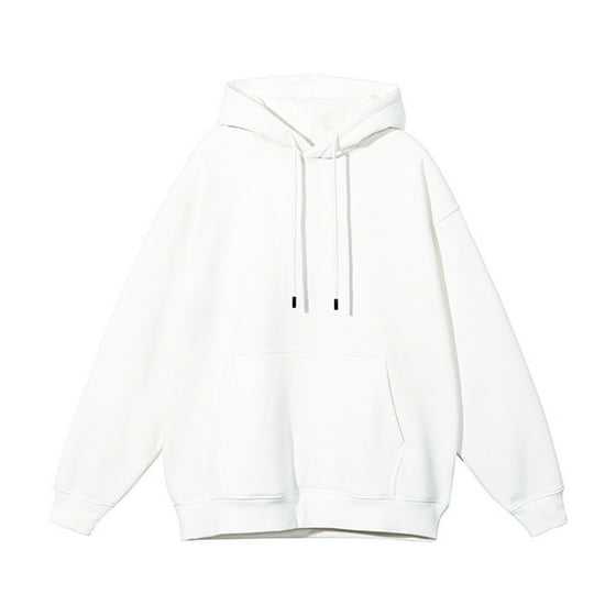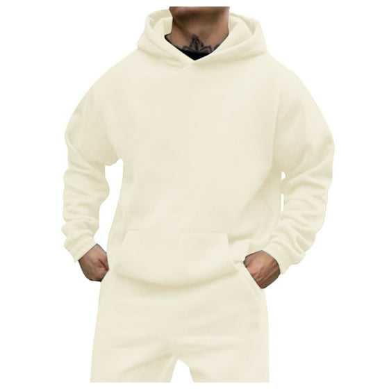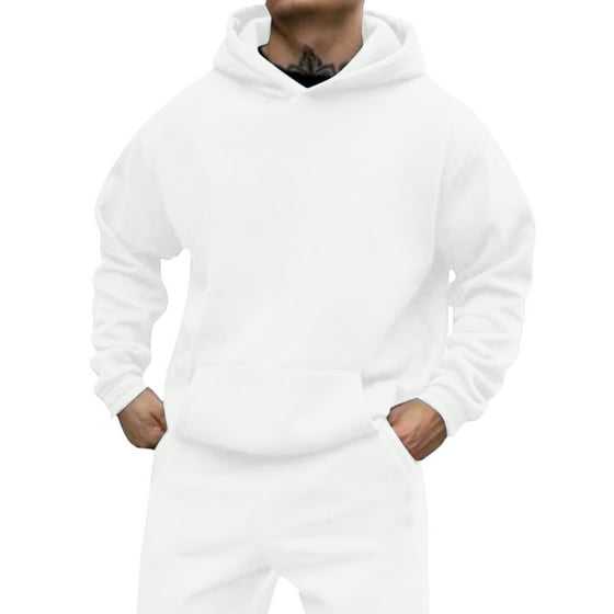 เสื้อสวมหัวมีฮู้ดสำหรับผู้ชายเสื้อฮู้ดสีขาวเปิดไหล่ตก