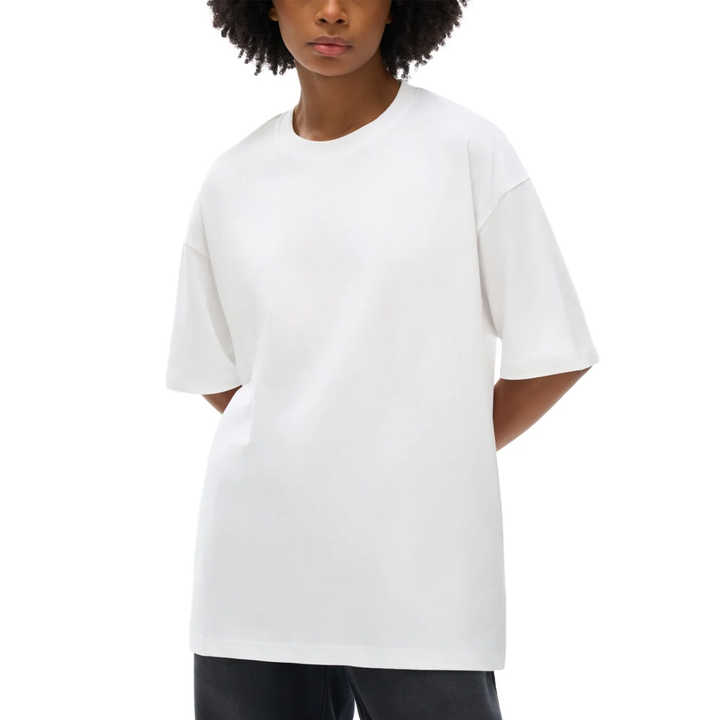 เสื้อยืดเปล่าทรงโอเวอร์ไซส์ ผ้าฝ้าย รับผลิตตามแบบ OEM สำหรับผู้หญิงไซส์พลัส พิมพ์ลายกราฟิกตามสั่ง โลโก้ตามสั่ง เสื้อยืดเจอร์ซีย์ลำลอง ผ้าถักย้อมสีพื้น
