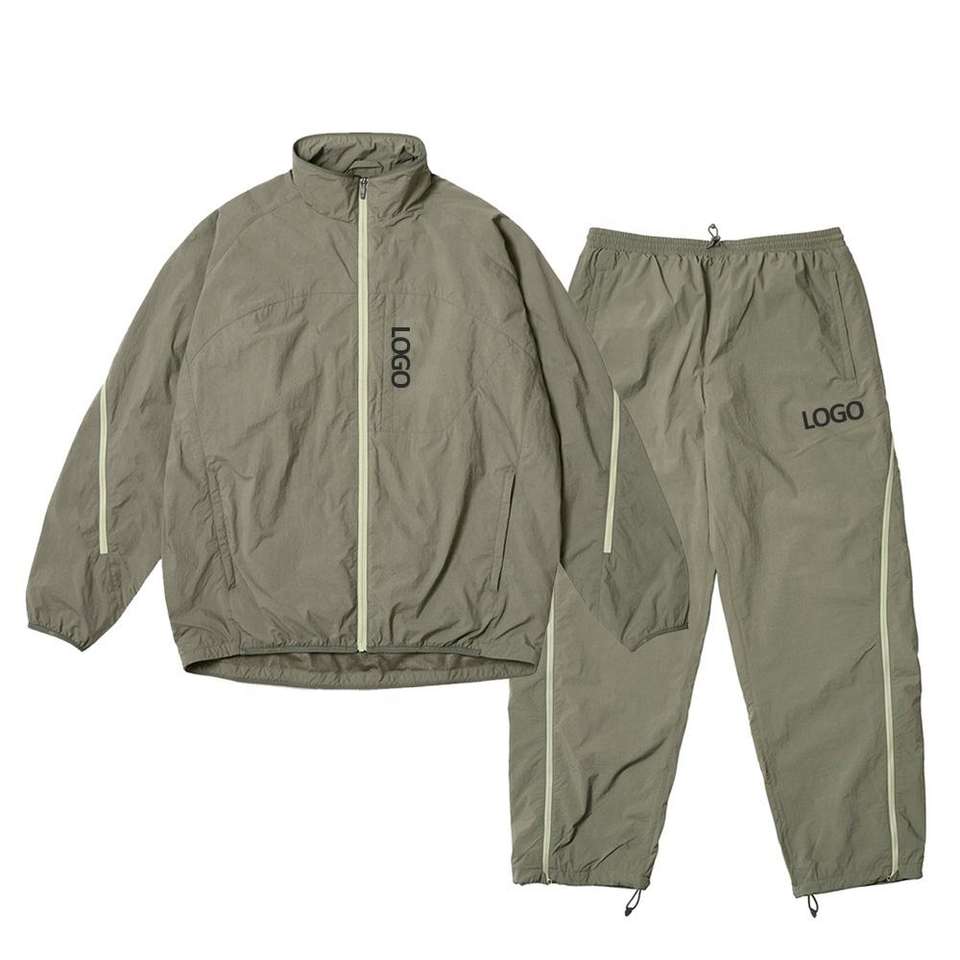 Blank Zip up Sports Nylon Tracksuits for Men High Quality Unisex Nylon Jacket Track Pants Set With Adjustable Zipper Leg