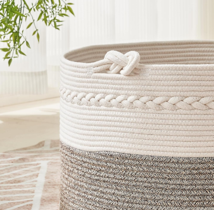 ตะกร้าผ้าแบบมีเชือกคอตตอนงานแฮนด์เมดตะกร้าใส่ของอเนกประสงค์