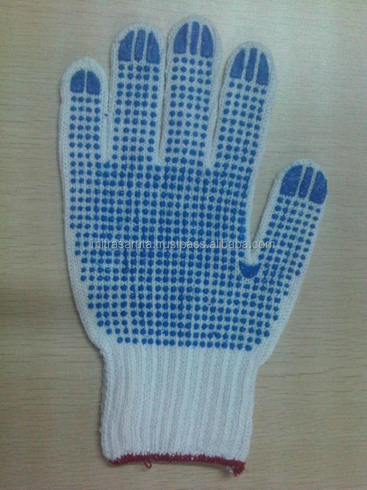 ถุงมือผ้าฝ้ายถักกันลื่นกันความร้อนมีจุดสีขาวทำจากพีวีซีมีวัตถุประสงค์ทั่วไปก่อสร้างใช้งานกลางแจ้ง