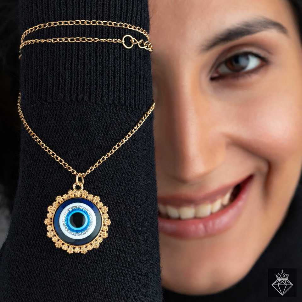 สร้อยคอแฟชั่นจี้รูปดวงตาปีศาจ Prao ทรงกลมที่ปกป้องจากความสุข