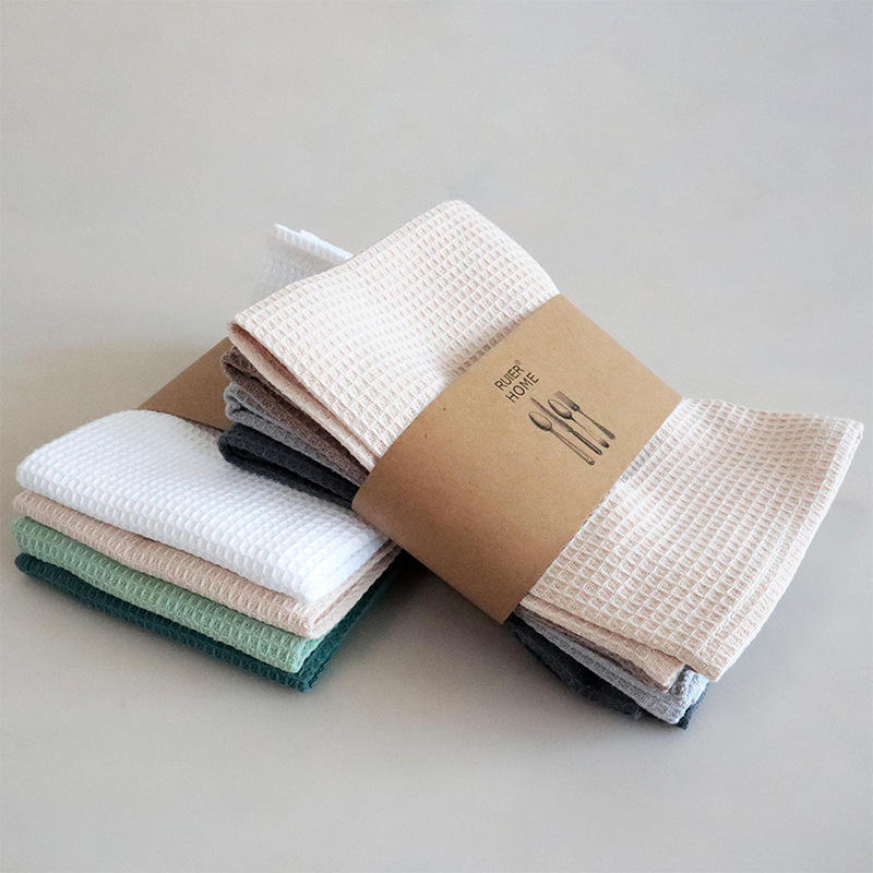 ผ้าเช็ดจานลายวาฟเฟิล บลิงโฮม ผ้าฝ้ายแท้ 100% ซับน้ำได้ดี ชุดผ้าเช็ดครัว 4 ผืน