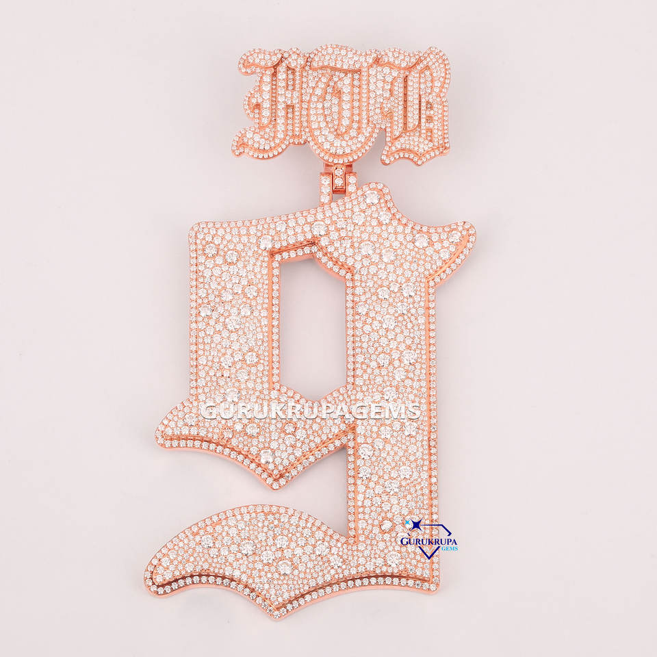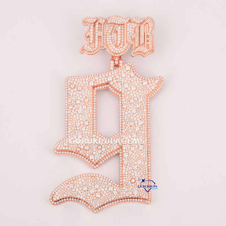 เครื่องประดับเพชรส่องแสงเป็นประกายระยิบระยับสไตล์ฮิปฮอป14KT สีโรสโกลด์การปลูกในห้องทดลองดีไซน์ใหม่สร้อยคอหมายเลข9สำหรับผู้ชาย