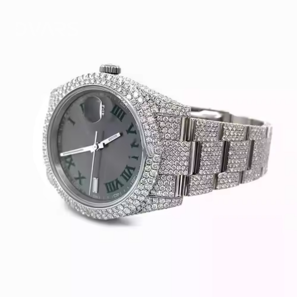 นาฬิกาข้อมือหรู Bling King ระบบกลไก ETA สำหรับนักธุรกิจ หน้าปัดกระจกประดับเพชรโมอิสซาไนต์ ตัวเลขโรมัน ขนาด 16 มม. สีทองขาว