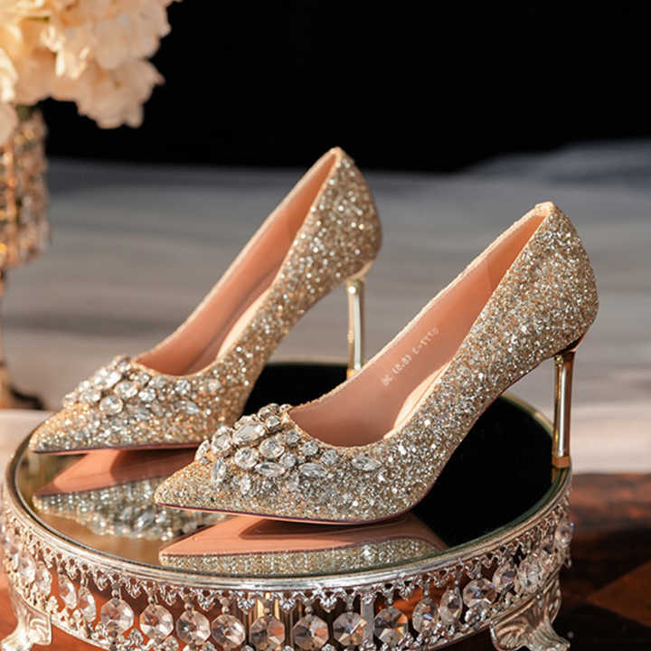 รองเท้าส้นสูงผ้าไหมประดับเลื่อมคุณภาพดีสำหรับผู้หญิง แฟชั่นทันสมัย เหมาะสำหรับใส่ทำงานหรือในโอกาสต่างๆ