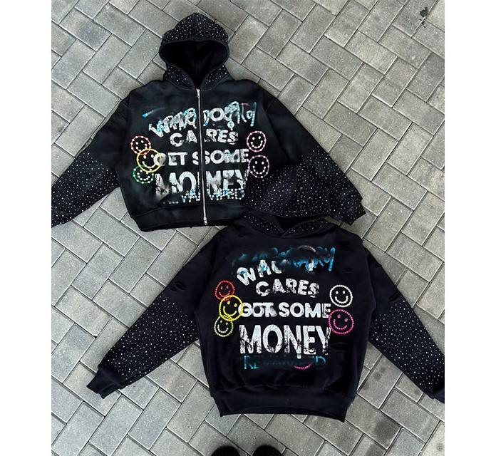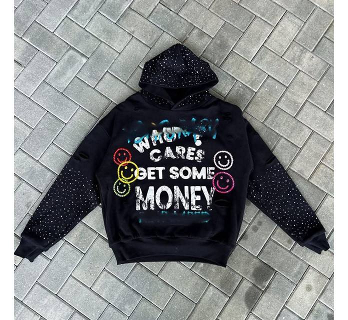 เสื้อสเวตเชิ้ตสตรีทแวร์แบบมีคริสตัลสำหรับผู้ชายและผู้หญิง ราคาโรงงาน เสื้อฮู้ดดี้คริสตัลแบบ unisex ทรงโอเวอร์ไซส์ สไตล์สตรีท
