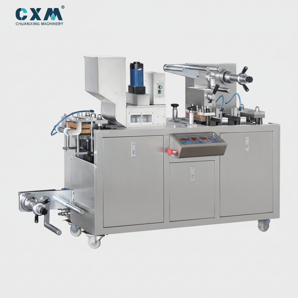 เครื่องผลิตบรรจุภัณฑ์แบบพลาสติกใสสำหรับลูกอม เม็ดยา และเม็ดผง