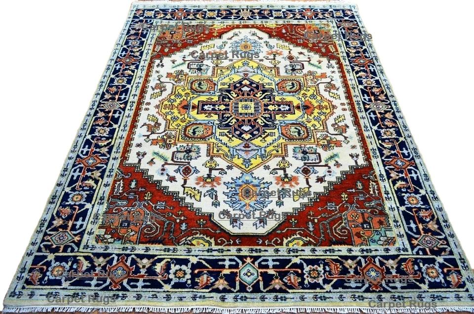 Bizar Maroon and Blue:Bizar Maroon and Blue Wool Cool Oushak 8x10 Premium Quality Wool Rug