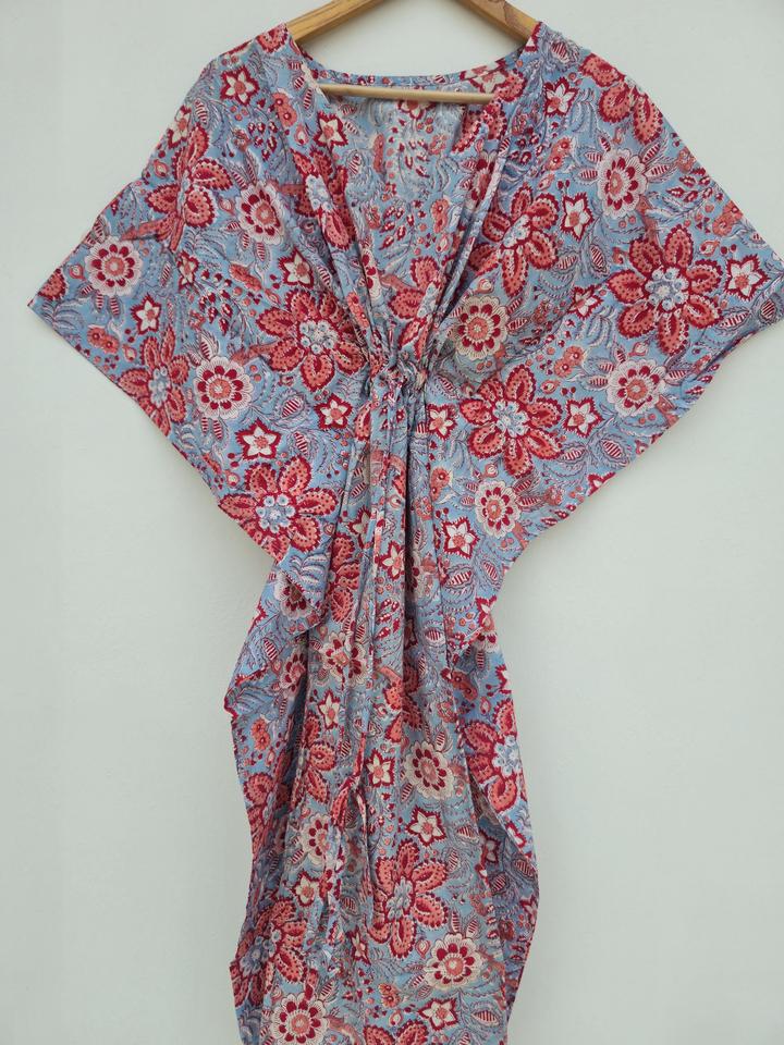 Product Name:Hand Block Print Kaftan Dress 100% Cotton Women's Summer Nightwear