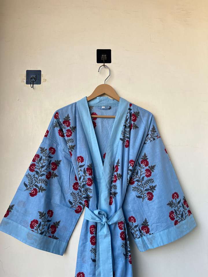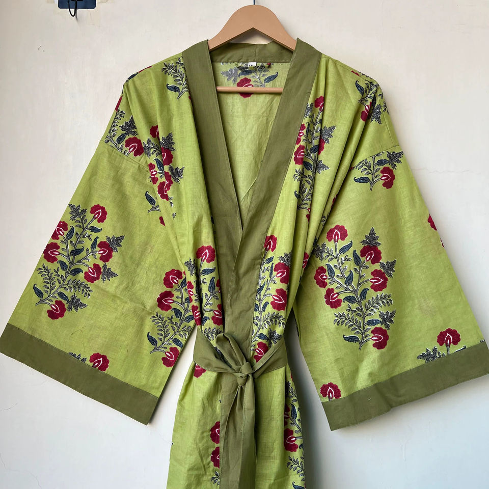 Block Print 100% Cotton Kimono Robe Floral Print Bathrobe Long Dressing Gown Summer Nightwear Bridesmaid Unisex Gift One Size