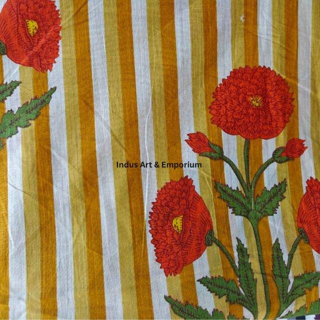 ผ้าคอตตอนแคมบริกพิมพ์ลายบล็อก 60x60 ซม. ผ้าพิมพ์ลายแบบดั้งเดิมจากเมืองชัยปุระ