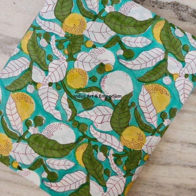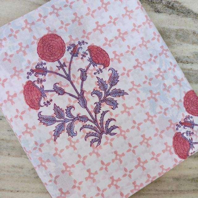 ผ้าคอตตอนแคมบริกพิมพ์ลายบล็อก 60x60 ซม. ผ้าพิมพ์ลายแบบดั้งเดิมจากเมืองชัยปุระ