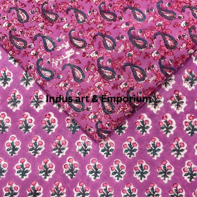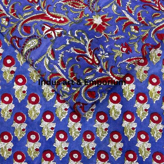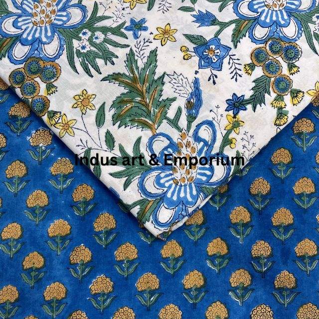ผ้าคอตตอนแคมบริกพิมพ์ลายบล็อก 60x60 ซม. ผ้าพิมพ์ลายแบบดั้งเดิมจากเมืองชัยปุระ