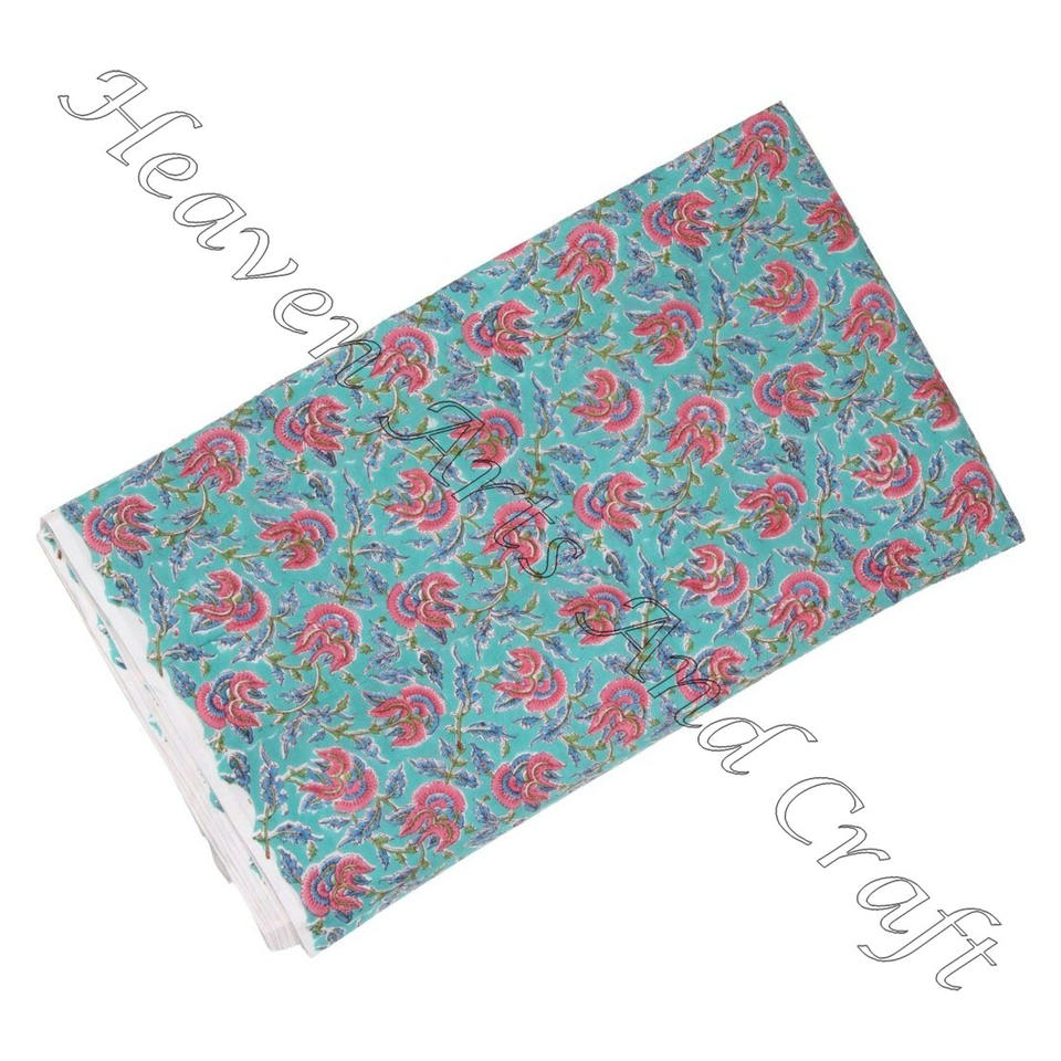 Jaipuri ผ้าคอตตอนพิมพ์ลายแบบดั้งเดิมเนื้อผ้าพิมพ์ลายจุดเล็กเนื้อผ้าพิมพ์ลายบล็อกด้วยมือ